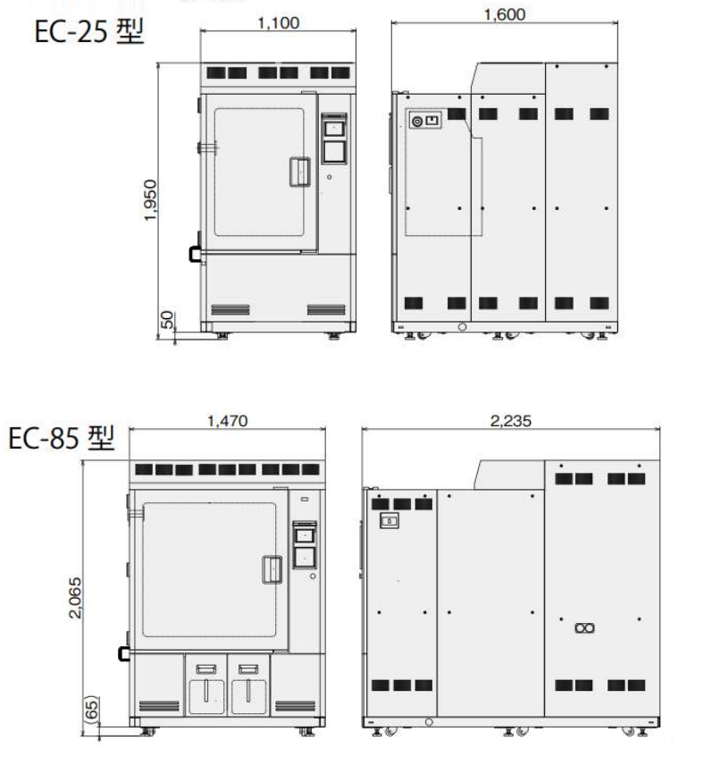 | EC-85EXHH20 (TH) | 800L | 1000x800x1000 | -70 ~180 | 20~95% | 20°C/min | 20°C/min |