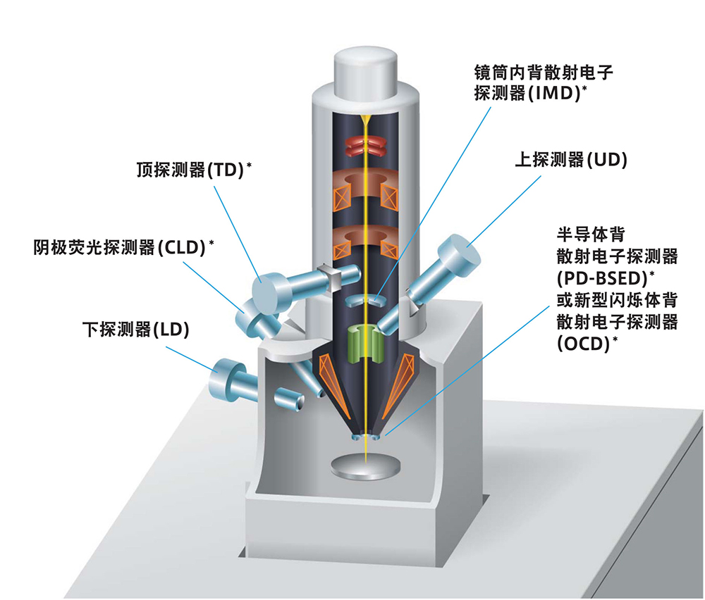 | 探测器 | 标配探测器 | 上探测器(UD)(ExB过滤:SE/BSE可切换信号) | |
