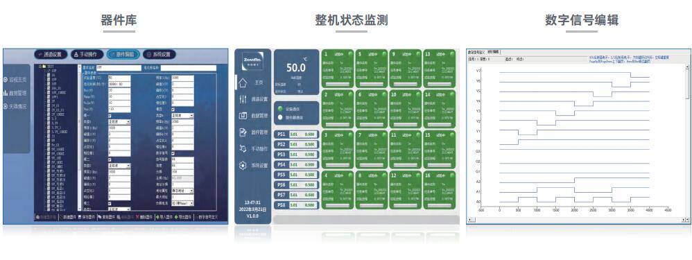 配置64路数字信号检测 回路,可实时回检DUT 输出信号的频率及幅度 参数;高端机型配置 TDBI逻辑功能测试