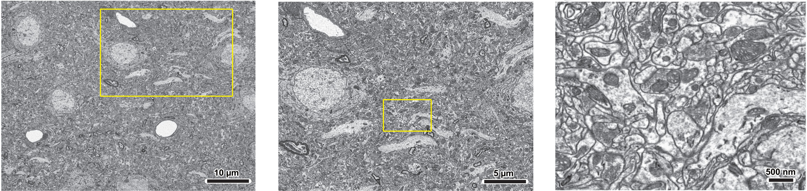 左图是视野约为60um,单次扫描采集的大鼠超薄切片样品高像素图像。