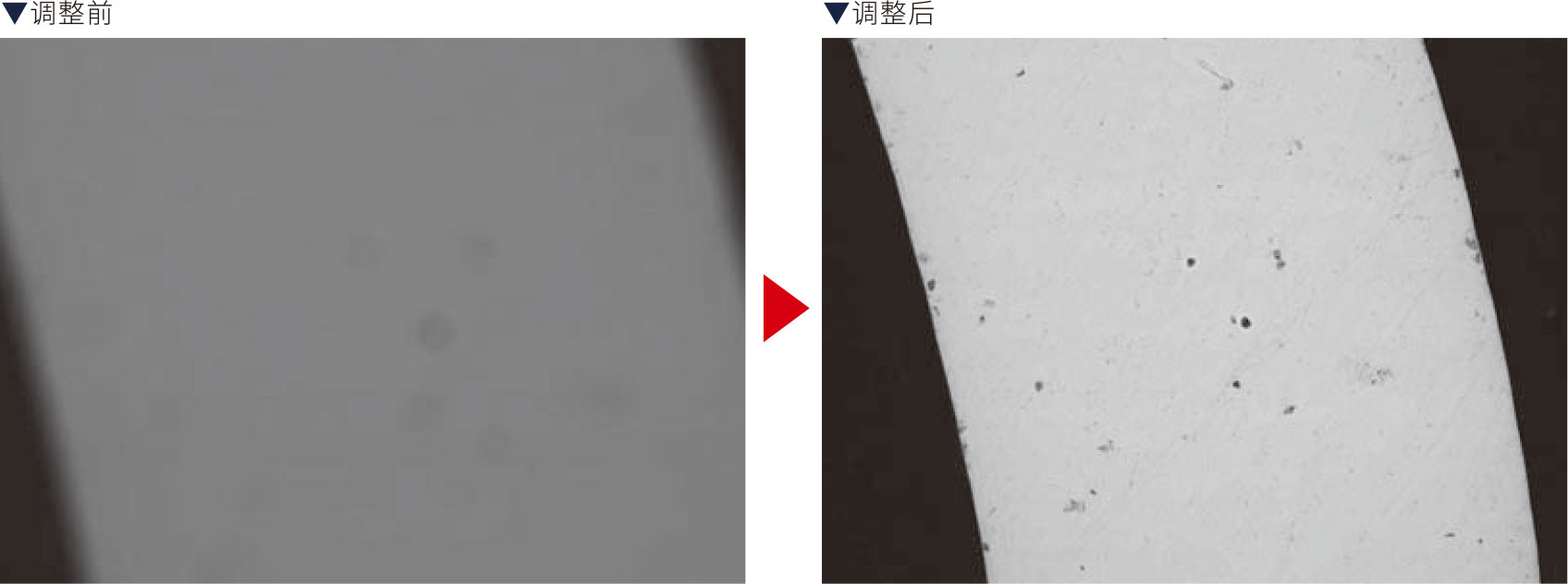 全新升级的自动聚焦调整功能,即便是以往难以调整光滑样品,也能够更加轻松的取得图像。